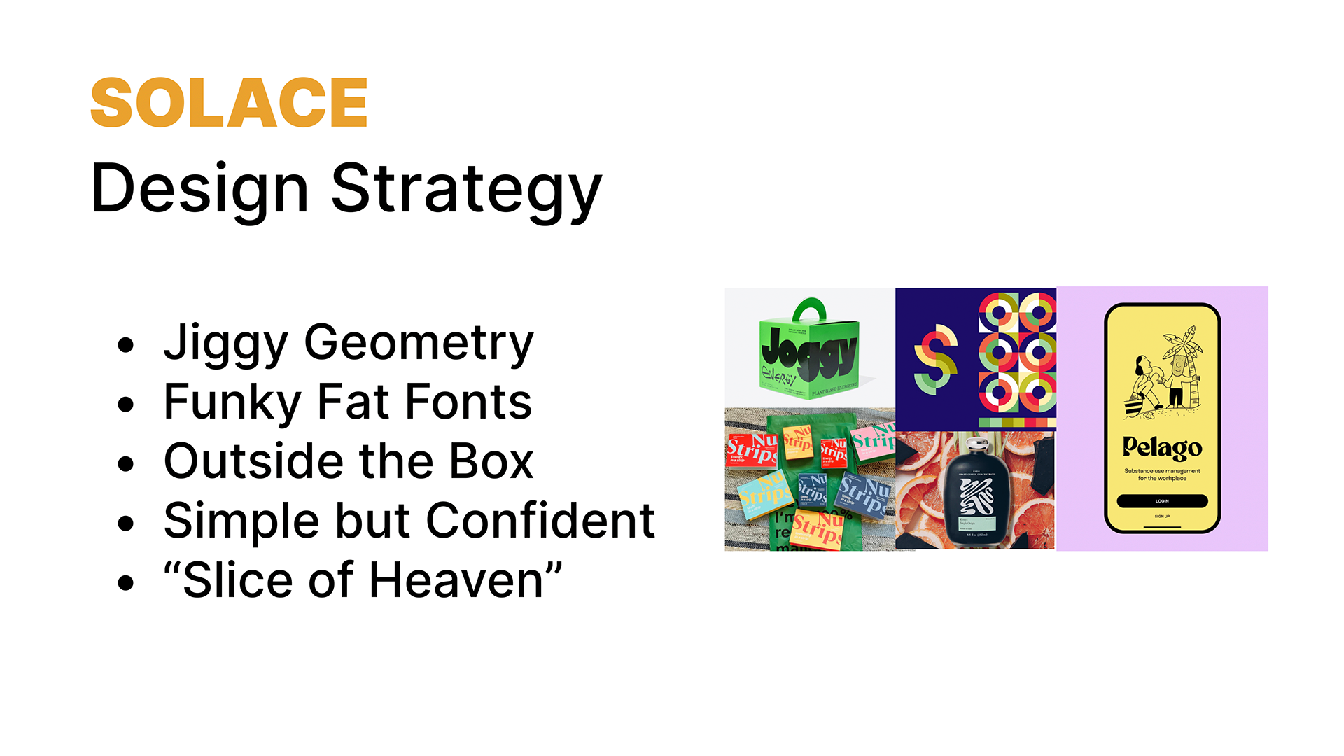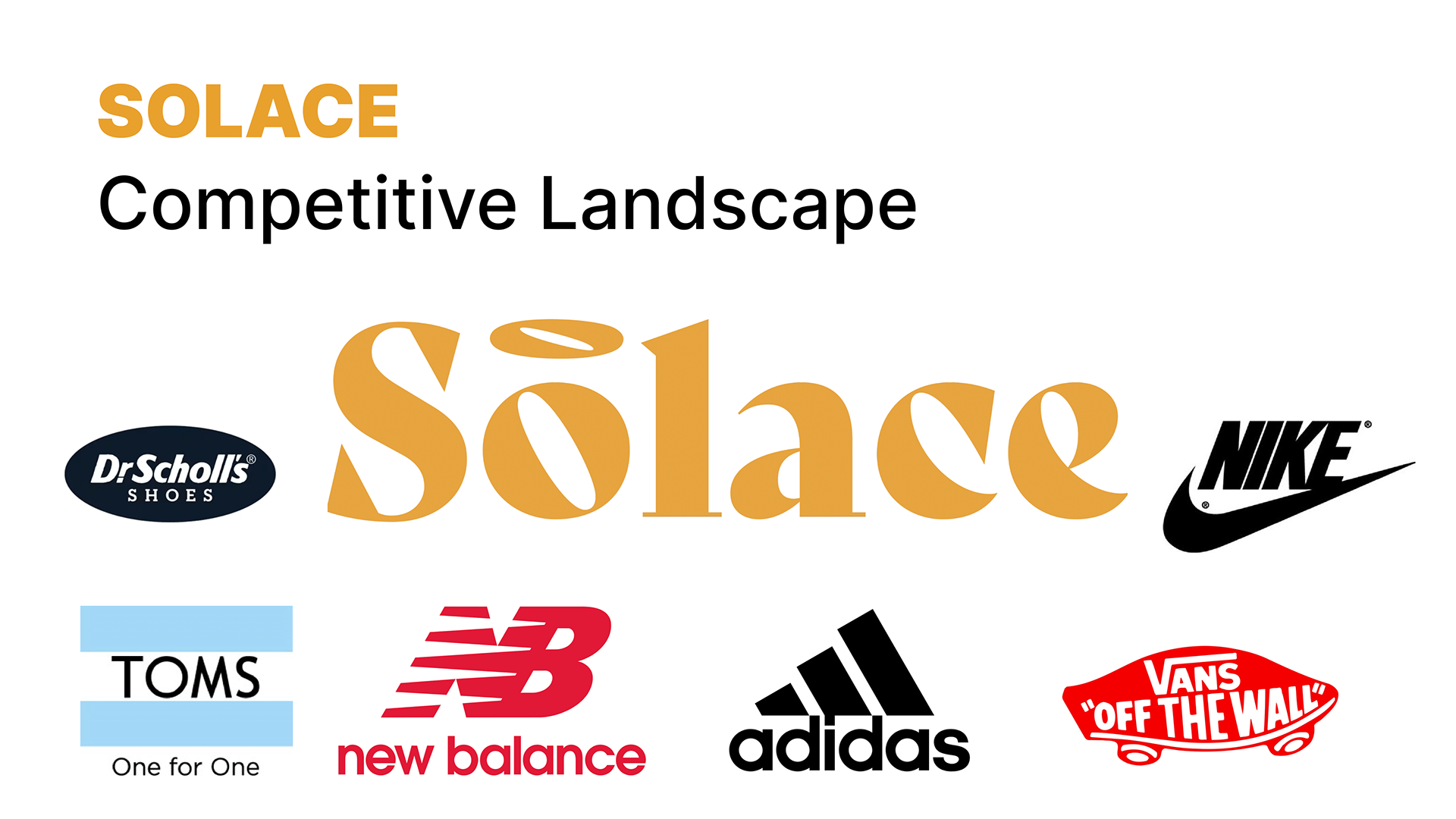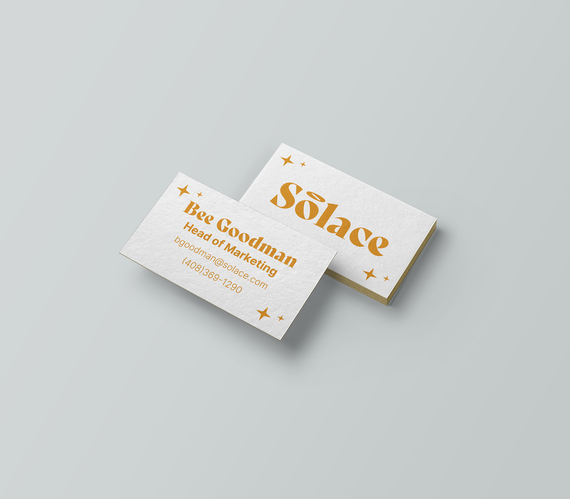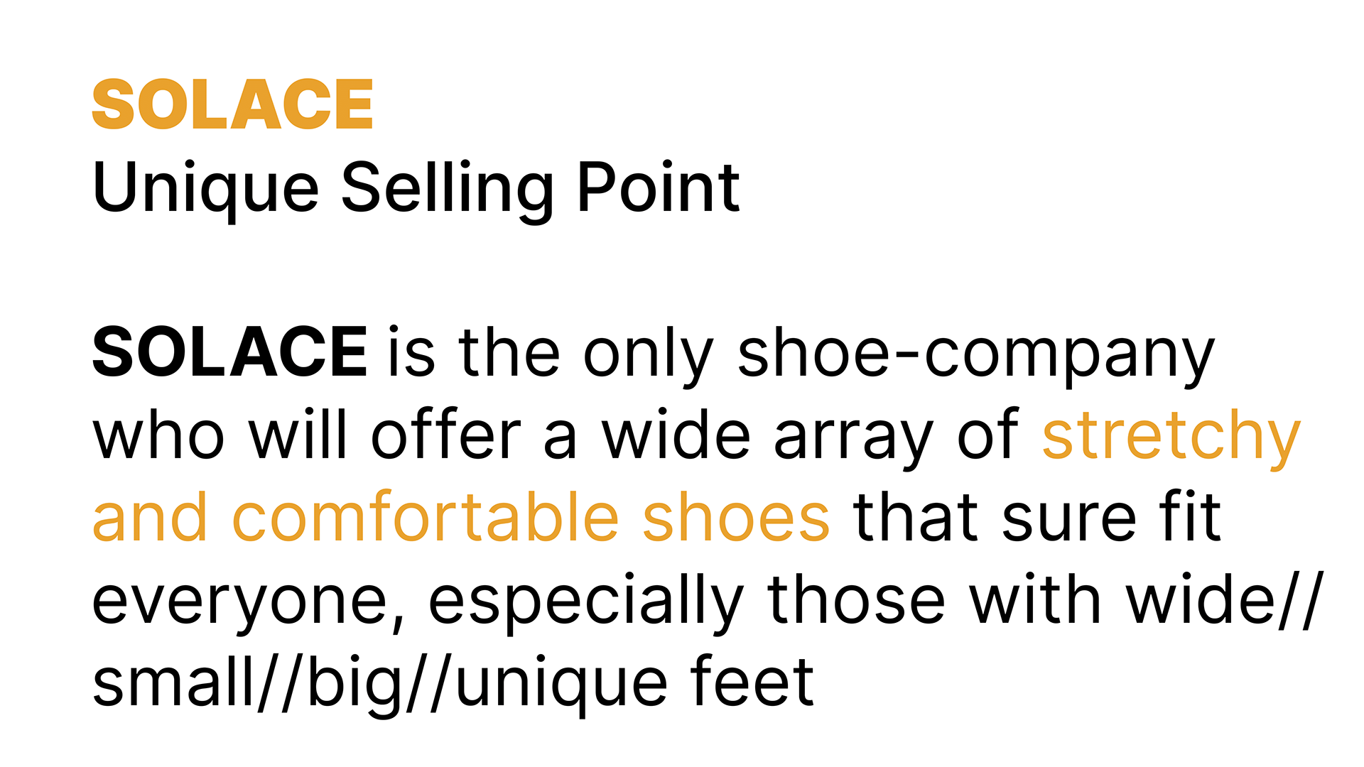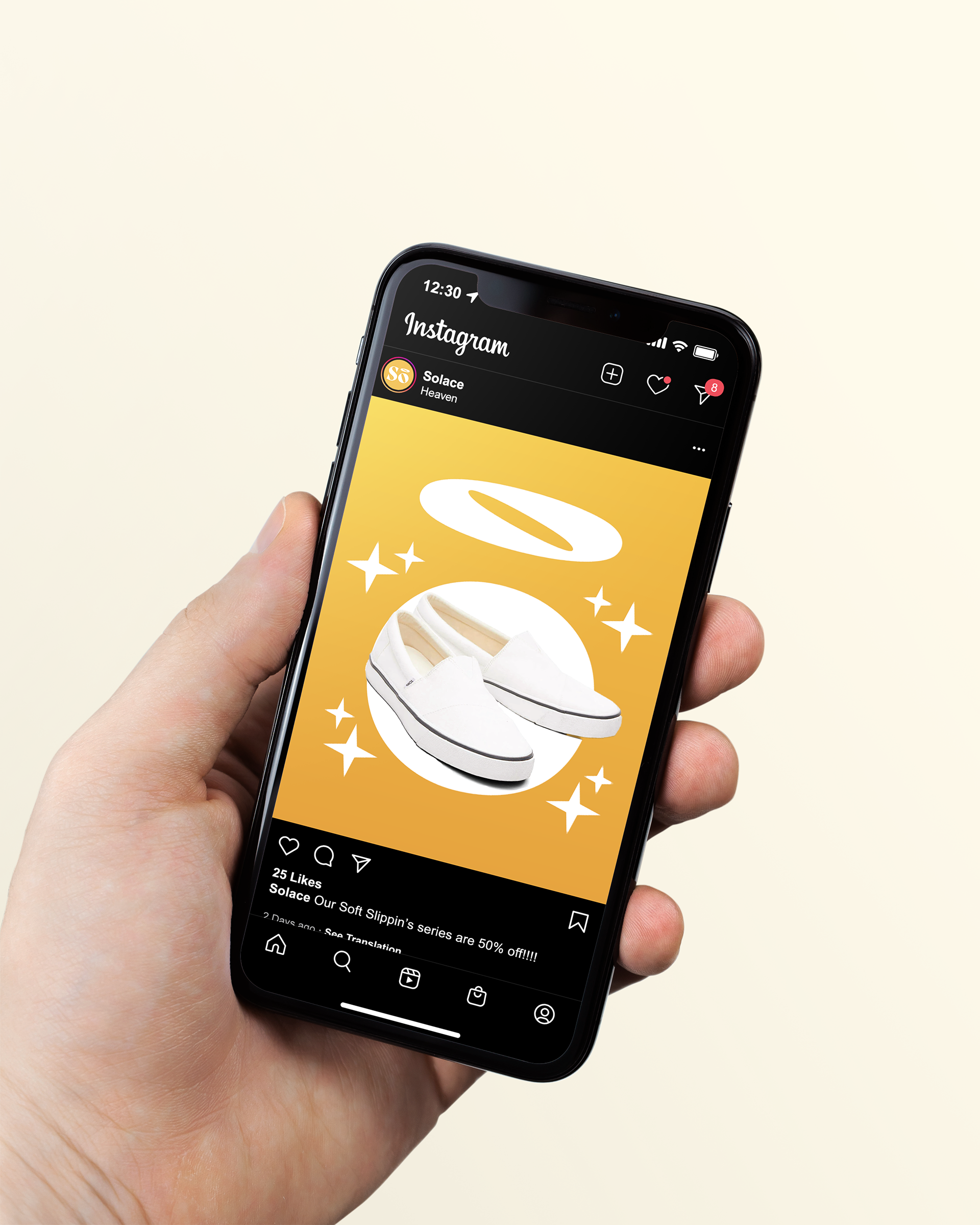 Solace is a fictional brand that specializes in selling stretchy shoes that are sure to fit everyone. The humble modern design style combined with a glittery gold palette ensures the target audience of weary souls that Solace's soles are the path to their shoe salvation!